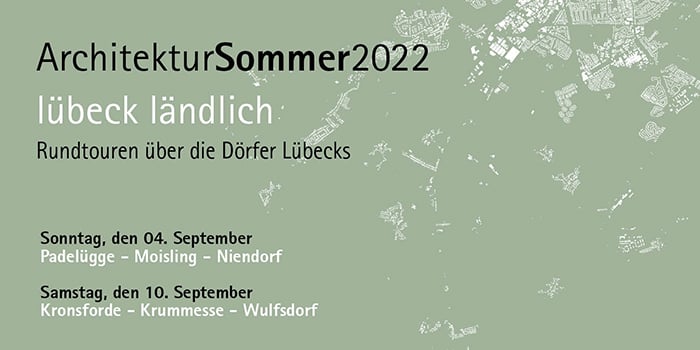 Der diesjährige ArchitekturSommer des ArchitekturForumLübeck weitet den Blick und widmet sich dem ländlichen Raum Lübecks. Auf zwei Touren wollen wir die Lübecker Dörfer entdecken, die große Bandbreite der verschiedenen Orte mit ihren unterschiedli- chen Entwicklungen erkunden und mit lokalen Akteur:innen und Bewohner:innen ins Gespräch kommen.