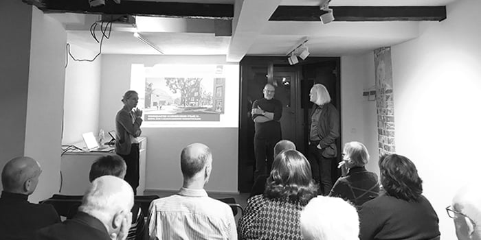 Es schloss sich eine interessierte Diskussion mit vielfältigen Fragen vom großmaßstäblich Städtebaulichen bis hin zum hochbaulichen Detail an.